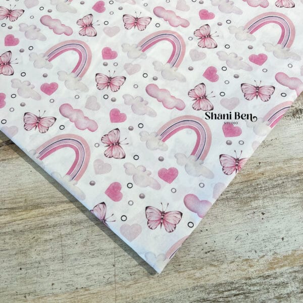 כותנה בהדפס שלנו קשת בענן ופרפרים ורוד
