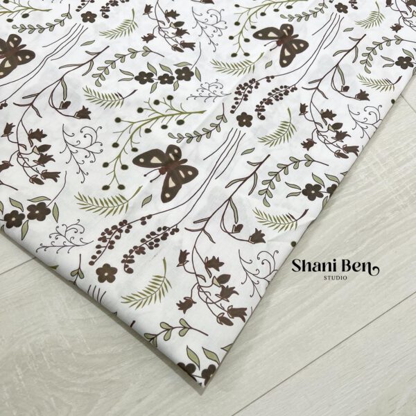 כותנה בהדפס שלנו פרפר חום ועלים בירוק