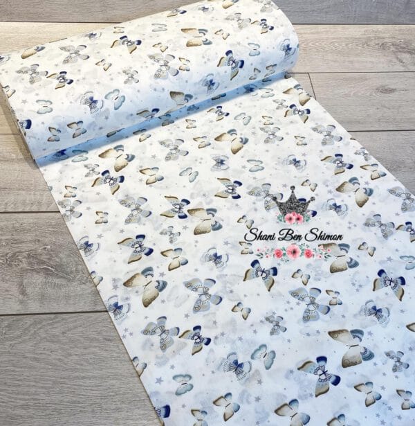 כותנה פרפרים צבעי מים גווני טורקיז כחול ומוקה