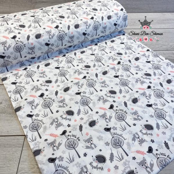 בהדפס שועלים עצים שחור לבן ועלים ורוד